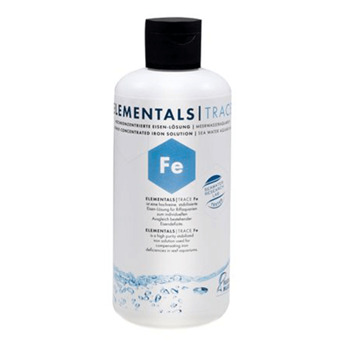 Fauna Marin Elementals Fe is a high purity iron solution used for compensating iron deficiencies in reef aquariums. The Elementals series is designed for use with regular ICP analyses to help keep your aquarium perfectly supplied.