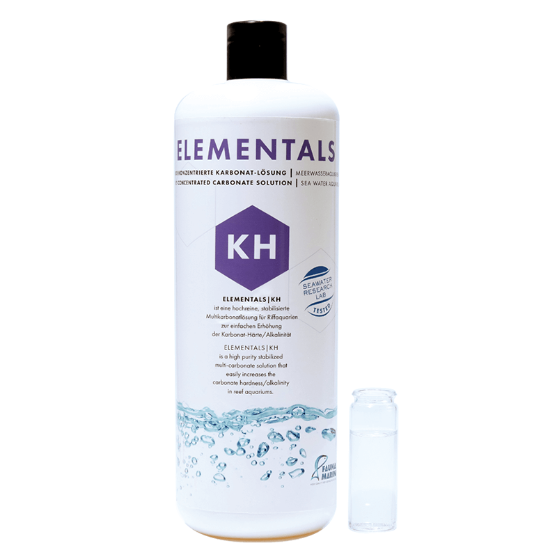 Fauna Marin Elementals Kh is a high purity stabilised multi-carbonate solution that easily increases the carbonate hardness/alkalinity in reef aquariums. This highly concentrated calcium and strontium solution for compensating deficiencies. The Elementals series is designed for use with regular ICP analyses to help keep your aquarium perfectly supplied.