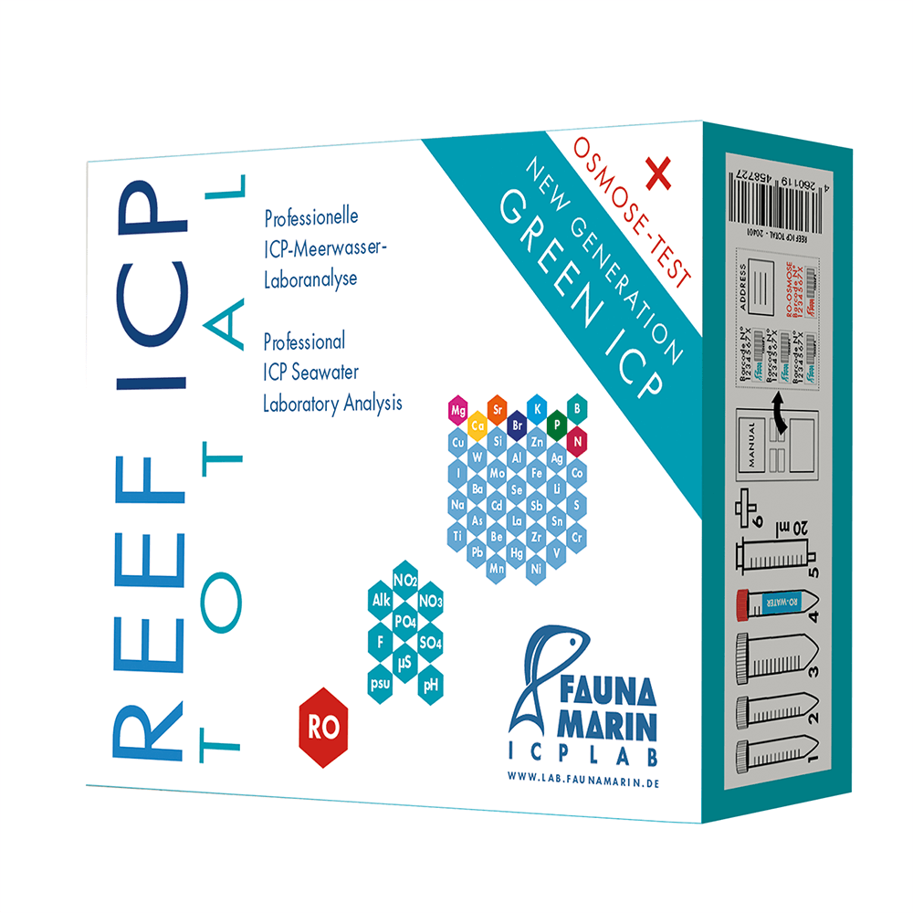 The Fauna Marin ICP Test Total gives a quick accurate and easy overview of over 90 water values in reef-aquariums. From macroelements to trace elements and pollutants, you get a complete overview with corresponding dosage and action recommendations.