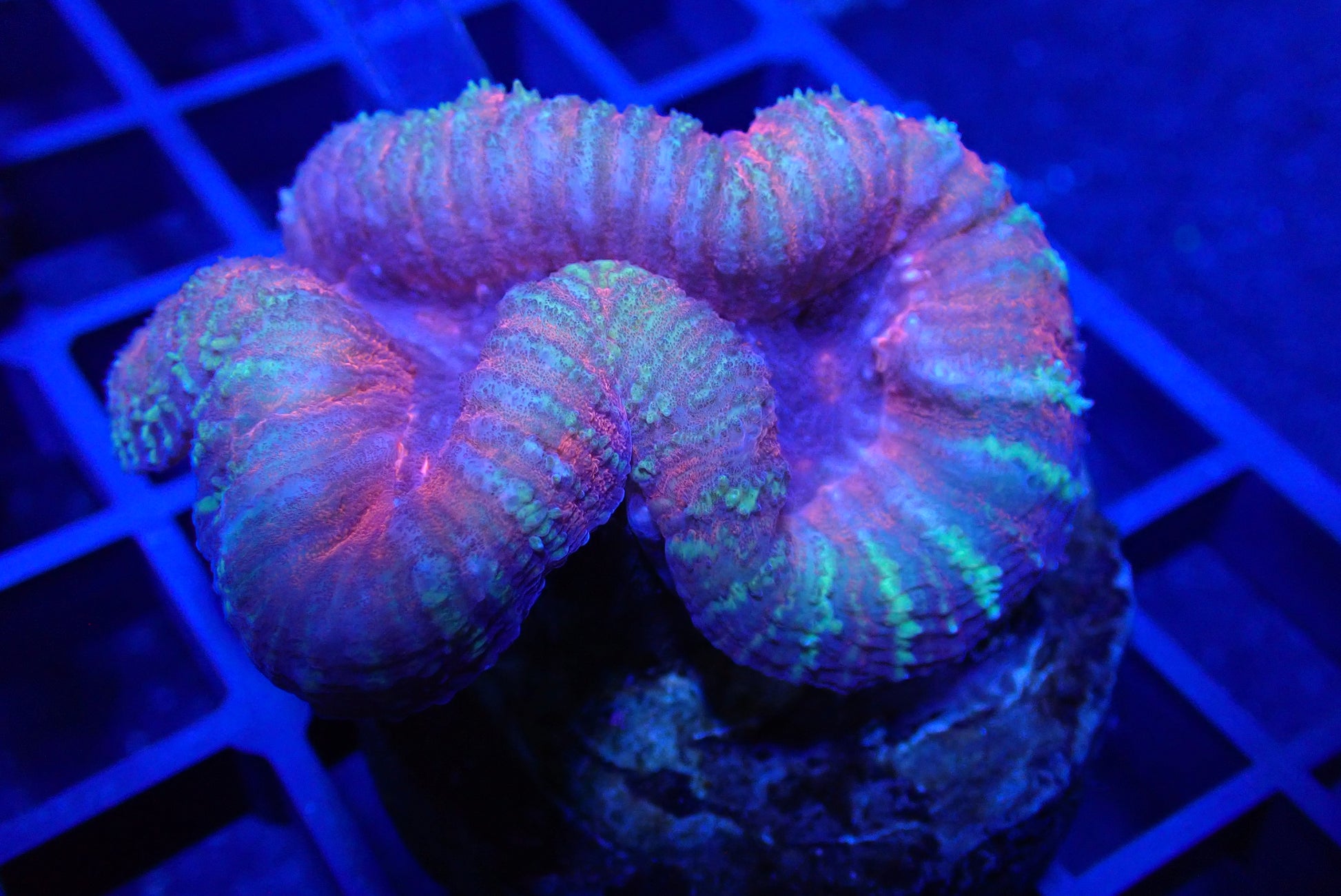 This Red Green Dash Lobo is the exact coral you’ll receive — WYSIWYG. The reds and greens on this piece are subtle but clean, blending together for a softer, natural look that fits perfectly into any mixed reef. It’s got that classic Lobo shape with great polyp extension and nice texture under blues.